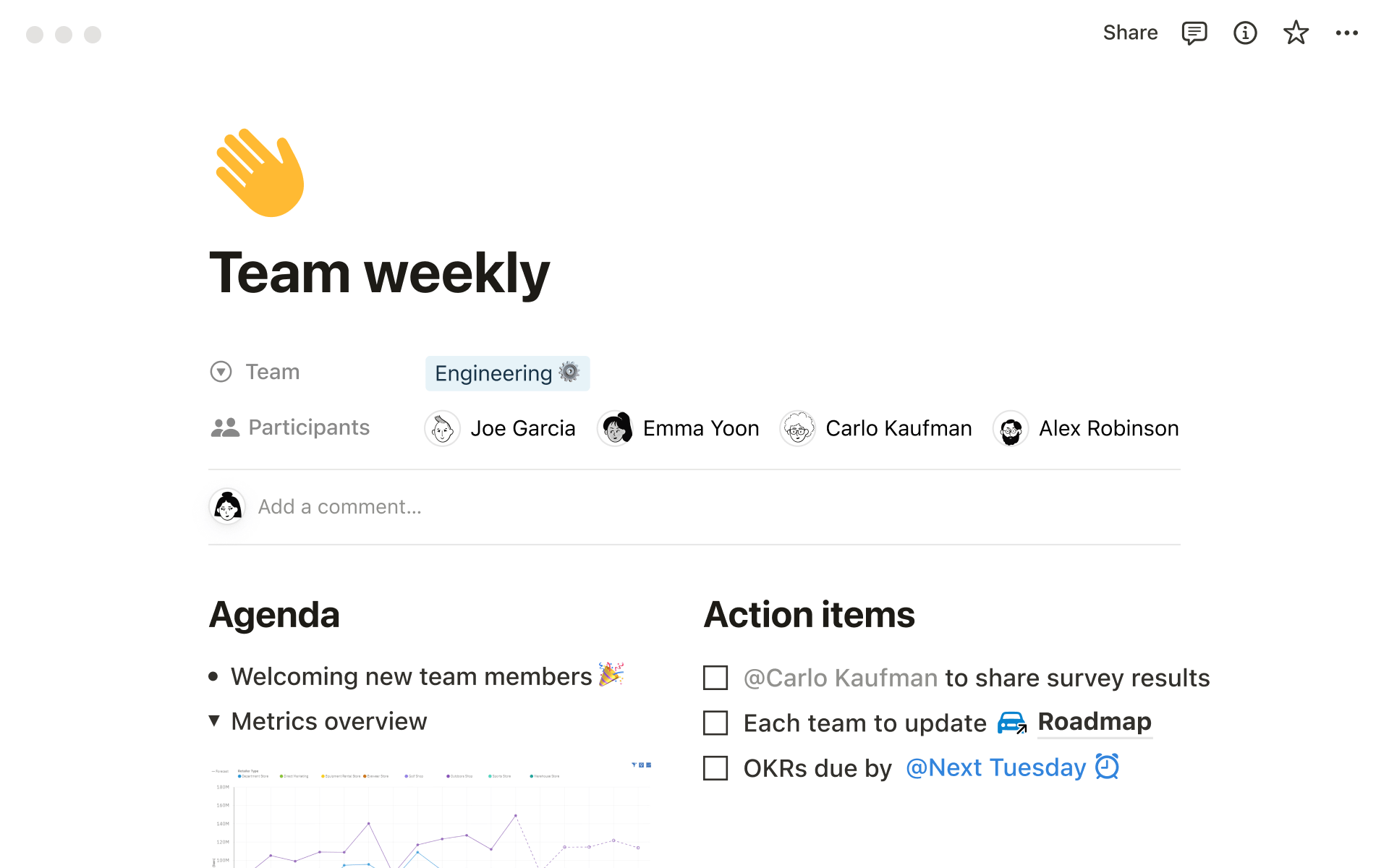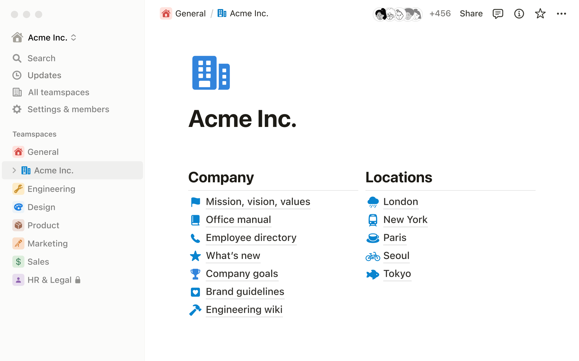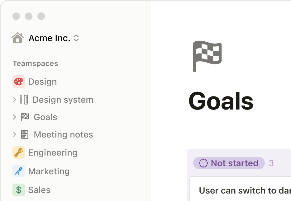 In Notion, every team has their own dedicated area, so they can work the way they want while making progress as one.