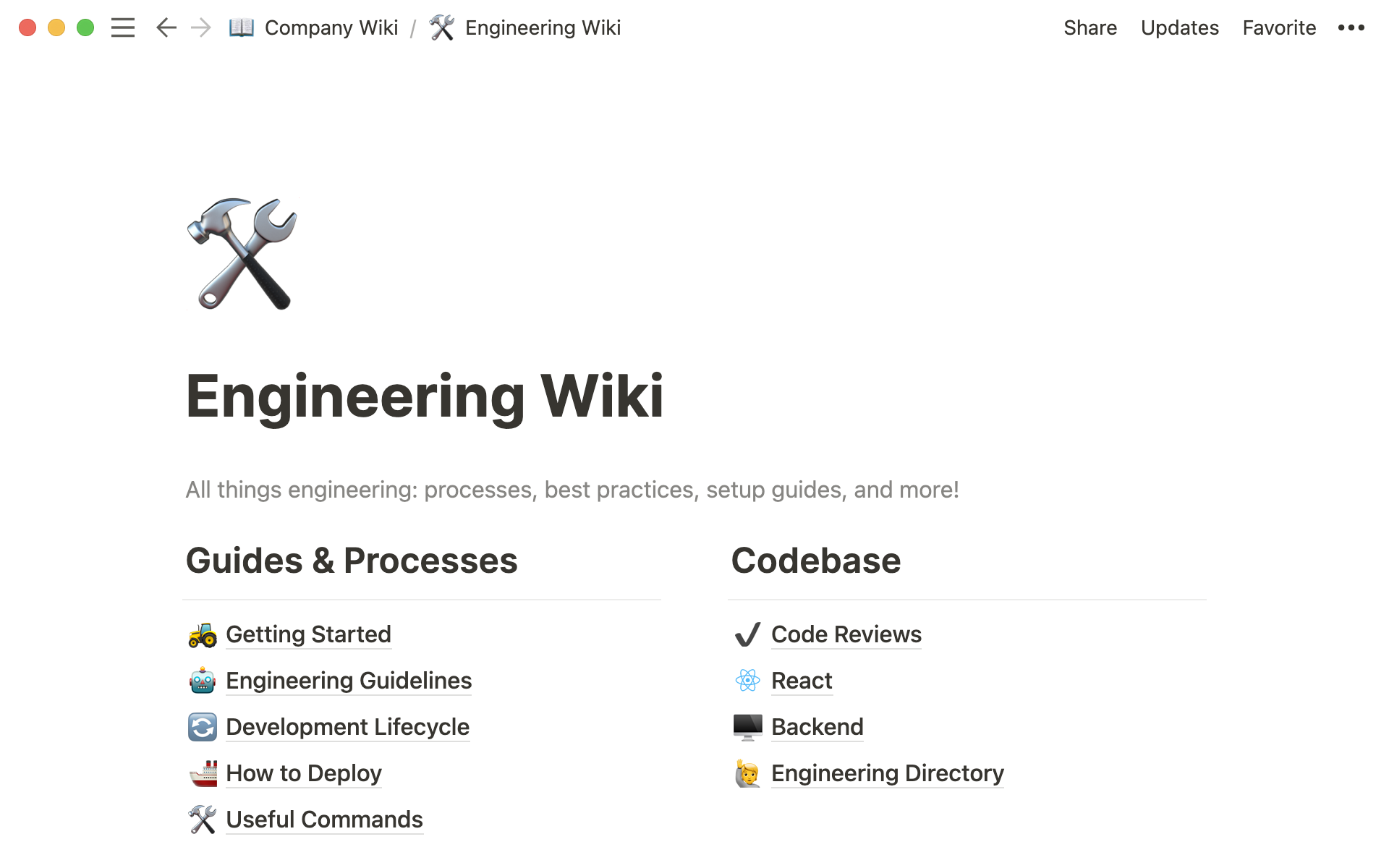 Notion is the only tool that makes documentation effortless to write. Whether it’s code guidelines, troubleshooting instructions, or triage rotations, all important processes are easy to find and connect to your day-to-day work.