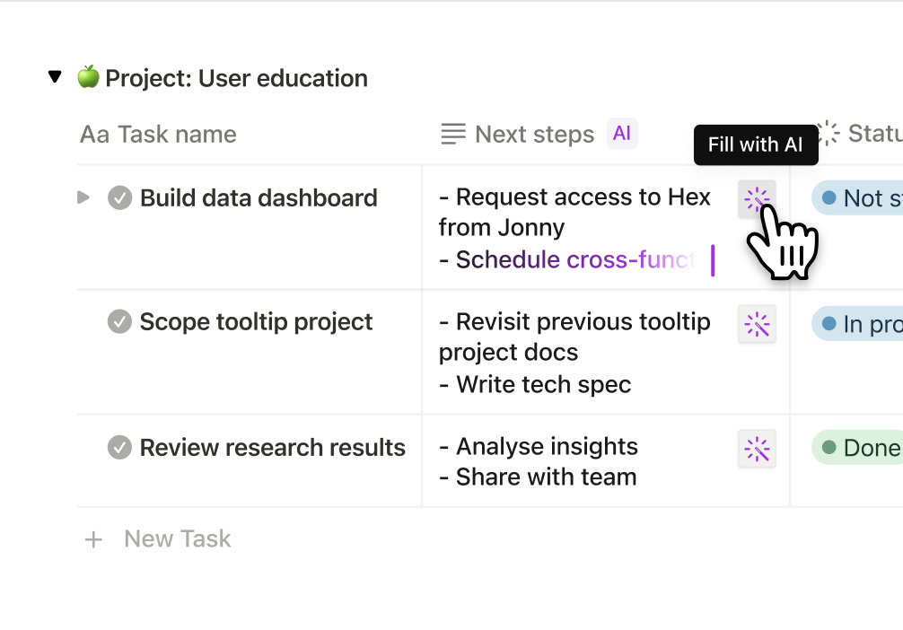 Customizable AI Autofill adds user stories, key results, updates, and more for every project deliverable.