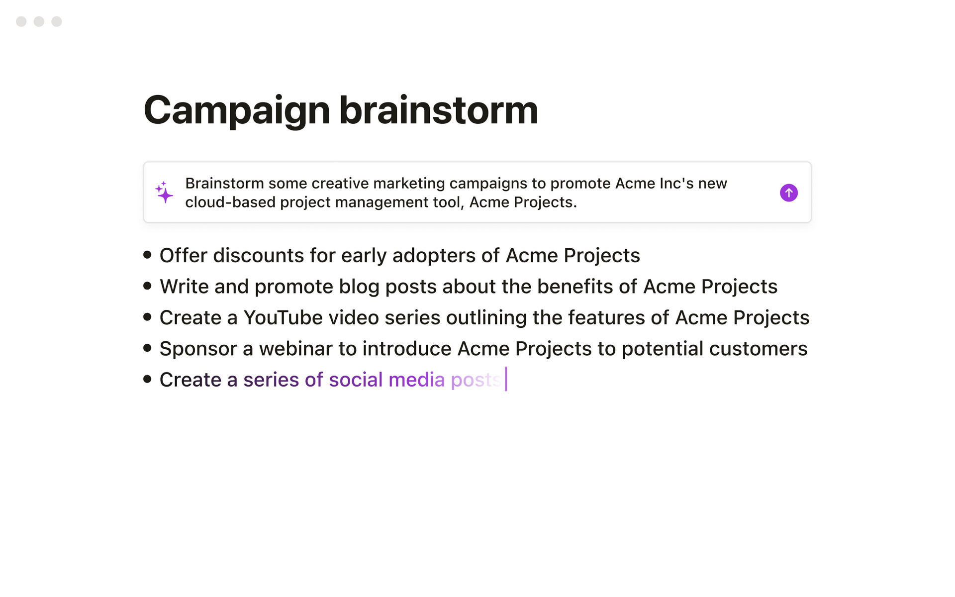Access the limitless power of AI, right inside Notion. Work faster. Write better. Think bigger.