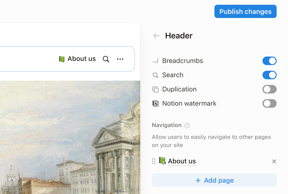 Design a custom nav bar with page links, search, breadcrumbs, and more.