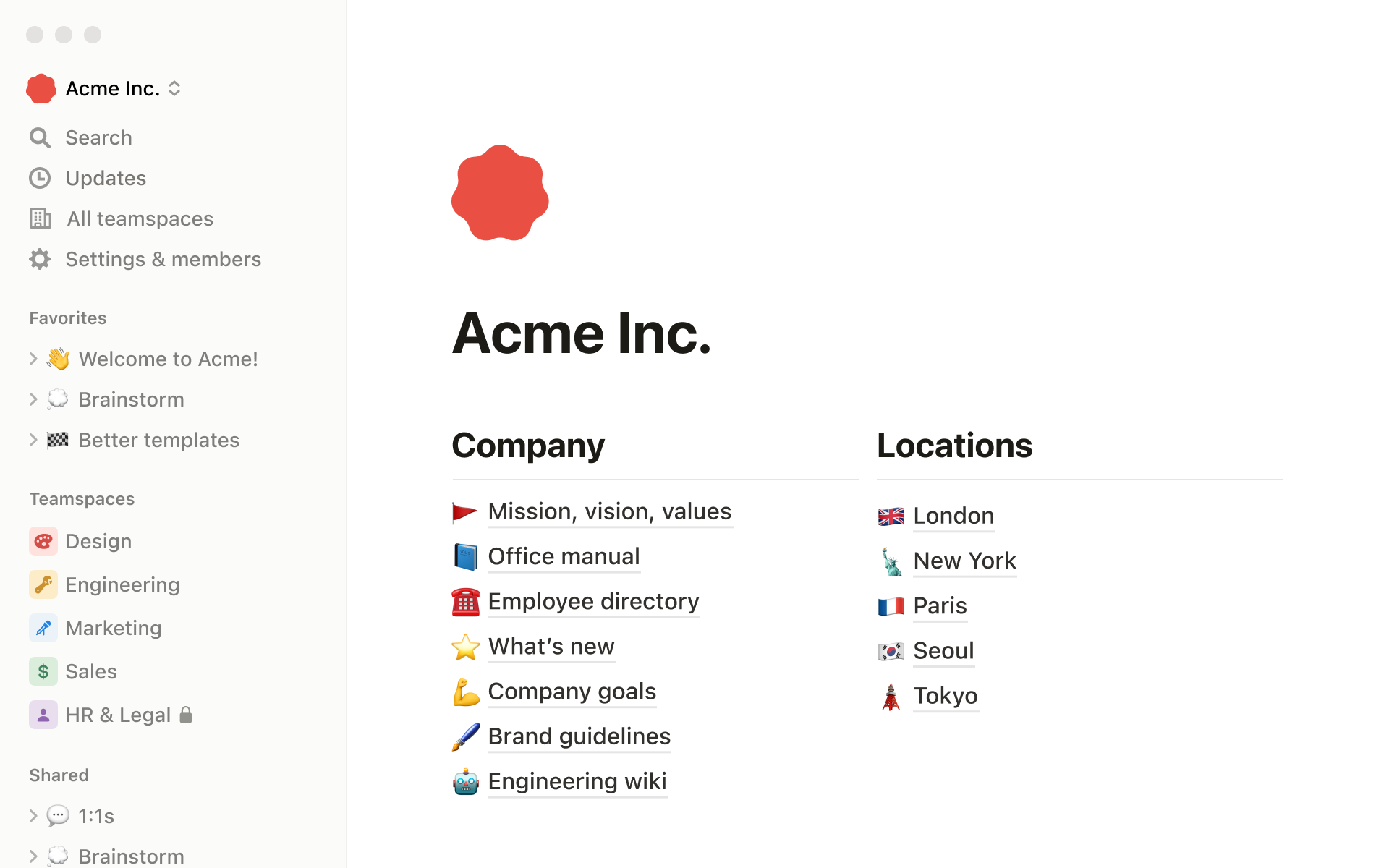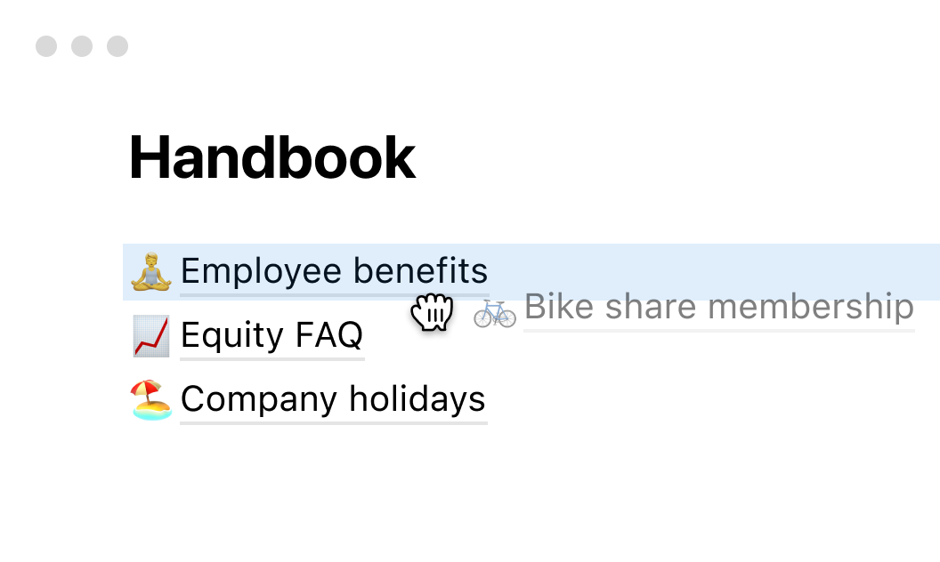 Pick the perfect emoji and cover image for every page to reflect your company’s brand.